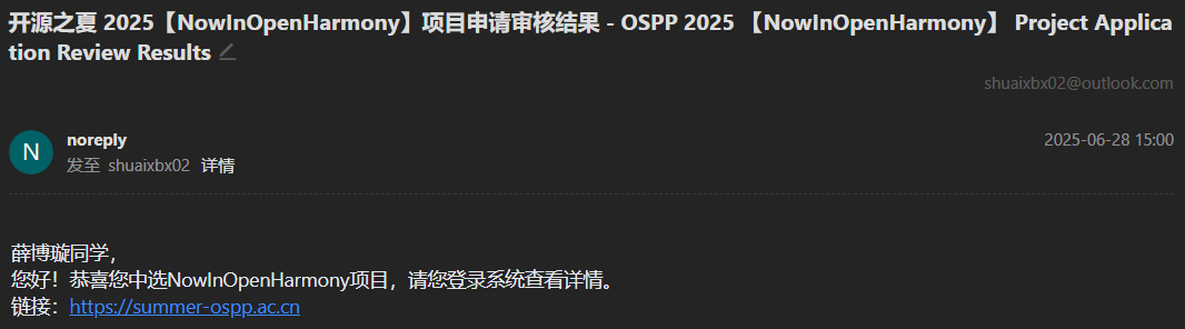 随后又有几个兼职和老师的的项目机会横插在了我提交项目计划书到中选出结果的这段时间里。我内心也还是担心我无法中选,所以也先都拖着说等开源之夏的结果。就这样我怀着这种忐忑不安、但又充满希望的心境一路等待到了28号。