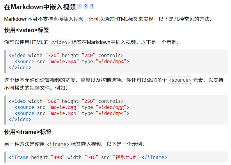 我首先想到的就是我的Markdown格式,因为我的博客以及鸿小易还有其他一些项目使用的都是Markdown格式,且Markdown支持原生的图片链接格式,但问题在于Markdown格式中没有原生的视频格式。只能使用内挂HTML标签的形式去进行视频的上传。我并不确定在使用OpenHarmony三方库进行md渲染时会不会出现问题,所以暂时作为备案。