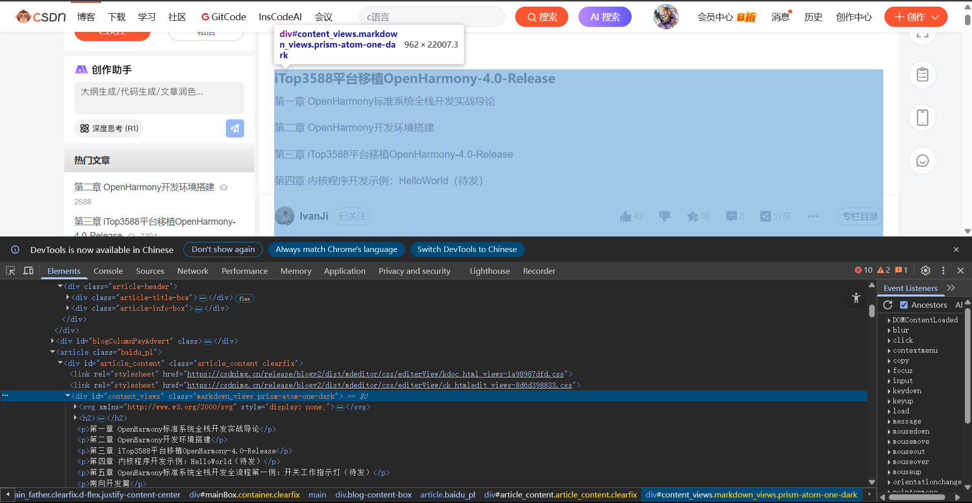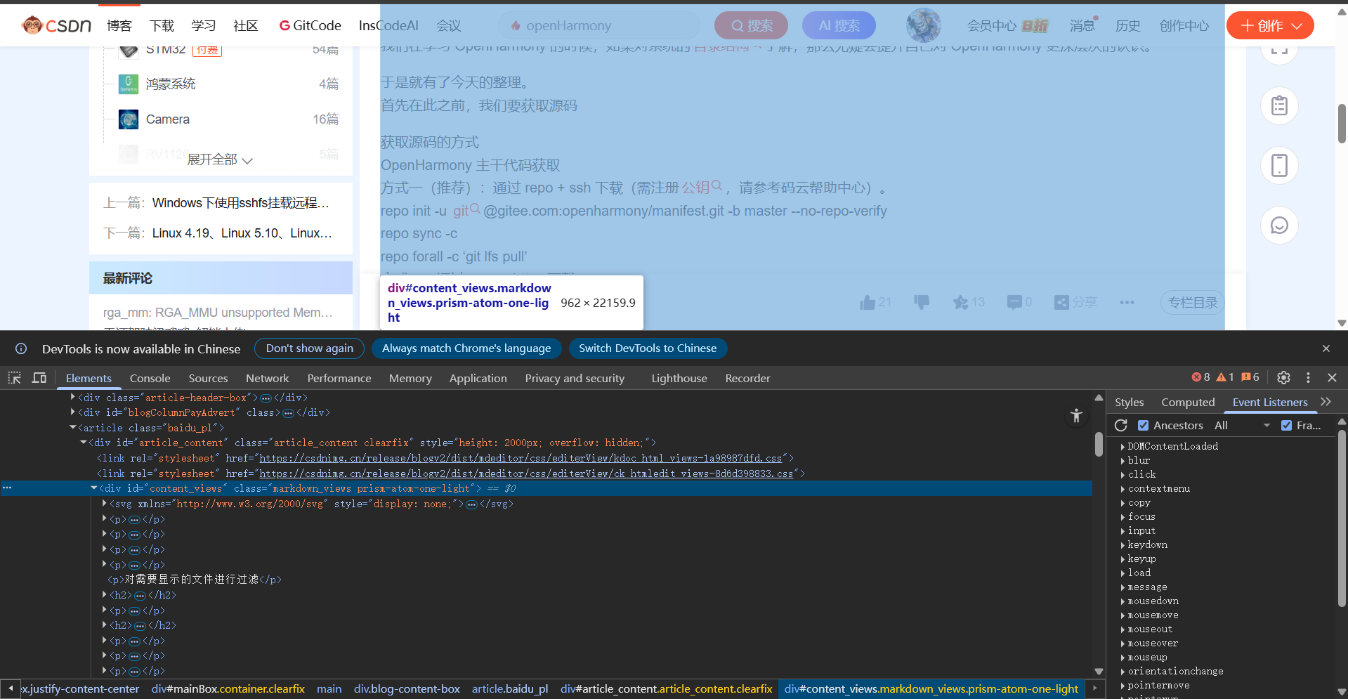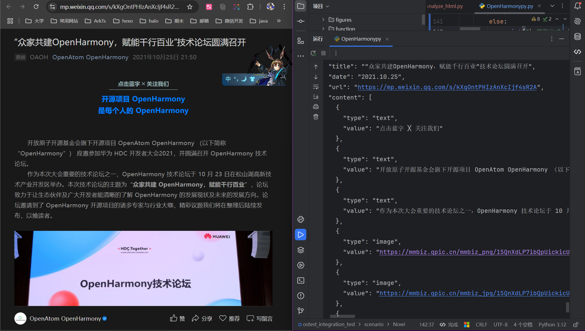 首先是OpenHarmony的官网,官网提供有很多的相关资讯,大多是以微信公众号的形式展现的,整体格式比较规整,我们先来进行爬取的尝试。
