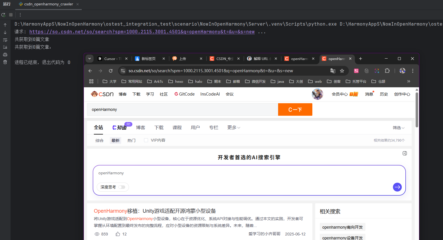 1 2 3 4 5 6 7 8 9 10 11 12 13 14 15 16 17 18 19 20 21 22 23 24 25 26 27 28 29 30 31 32 33 34 35 36 37 38 39 40 41 42 43 44 45 46 47 48 49 50 51 52 53 54 55 56 57 58 59 D:\Anaconda\python.exe D:\HarmonyAppS\NowInOpenHarmony\ostest_integration_test\scenario\NowInOpenHarmony\Server\OpenHarmonypy.py Selenium已安装,将使用JavaScript渲染功能 OpenHarmony官网新闻爬虫启动... 注意:此脚本需要安装以下依赖: pip install requests beautifulsoup4 selenium 同时需要安装Chrome浏览器和ChromeDriver 如果没有安装,将自动回退到普通HTTP请求模式 -------------------------------------------------- 开始爬取资讯列表页面: https://www.openharmony.cn/newList?id =3 浏览器驱动初始化成功 JavaScript渲染后的页面内容已保存到 debug_page_js.html 正在查找文章链接... 尝试从data属性提取文章信息... 找到文章: 对话OpenHarmony开源先锋:如何用代码革新终端生态 - 2025.02 .28 找到文章: 12 强终极PK!第二届OpenHarmony创新应用挑战赛引爆开源热潮 - 2025.02 .24 找到文章: 第二届OpenHarmony创新应用挑战赛决赛路演队伍揭晓 - 2025.02 .20 找到文章: OpenHarmony社区2024 年度运营报告发布,致谢每一位生态共建者! - 2025.02 .11 找到文章: 开源鸿蒙社区恭祝全体开发者2025 新年快乐,新春大吉! - 2025.01 .29 找到文章: 共绘2025 年开源新蓝图,OpenHarmony社区项目管理委员会年度工作会议在深圳成功举办 - 2025.01 .27 找到文章: 对话OpenHarmony开源先锋:如何用代码革新终端生态 - 2025.02 .28 找到文章: 12 强终极PK!第二届OpenHarmony创新应用挑战赛引爆开源热潮 - 2025.02 .24 找到文章: 第二届OpenHarmony创新应用挑战赛决赛路演队伍揭晓 - 2025.02 .20 找到文章: OpenHarmony社区2024 年度运营报告发布,致谢每一位生态共建者! - 2025.02 .11 找到文章: 开源鸿蒙社区恭祝全体开发者2025 新年快乐,新春大吉! - 2025.01 .29 找到文章: 共绘2025 年开源新蓝图,OpenHarmony社区项目管理委员会年度工作会议在深圳成功举办 - 2025.01 .27 从页面结构中提取到 12 个文章信息 验证有效URL: https://www.openharmony.cn/newsDetail?id =6ffe8bf2 验证有效URL: https://www.openharmony.cn/newsDetail?id =4846eac5 验证有效URL: https://www.openharmony.cn/newsDetail?id =6cba5071 验证有效URL: https://www.openharmony.cn/newsDetail?id =6f5b68a4 验证有效URL: https://www.openharmony.cn/newsDetail?id =059ed888 验证有效URL: https://www.openharmony.cn/newsDetail?id =4683d67c 验证有效URL: https://www.openharmony.cn/newsDetail?id =6ffe8bf2 验证有效URL: https://www.openharmony.cn/newsDetail?id =4846eac5 验证有效URL: https://www.openharmony.cn/newsDetail?id =6cba5071 验证有效URL: https://www.openharmony.cn/newsDetail?id =6f5b68a4 验证有效URL: https://www.openharmony.cn/newsDetail?id =059ed888 验证有效URL: https://www.openharmony.cn/newsDetail?id =4683d67c 去重后共有 6 个文章链接 共找到 6 篇文章 正在爬取第 1 篇文章: https://www.openharmony.cn/newsDetail?id =6ffe8bf2 文章内容解析失败 正在爬取第 2 篇文章: https://www.openharmony.cn/newsDetail?id =4846eac5 文章内容解析失败 正在爬取第 3 篇文章: https://www.openharmony.cn/newsDetail?id =6cba5071 文章内容解析失败 ================================================== 爬取结果JSON: ================================================== [] 浏览器驱动已关闭 爬取完成,但未找到任何文章 进程已结束,退出代码为 0